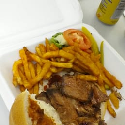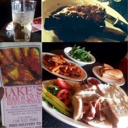 Just ordered lunch for the first time from Jakes and contrary to some of the bad reviews both my boss and I couldnt have enjoyed it more. The order taker on the phone was very friendly and the food arrived promptly and the delivery guy was also nice, so much for the bad comments on the service. As for the food I got the Brisket of Beef Sandwich with fries, the brisket was perfect, a little fatty and charred on the ends just as its supposed to be. The sauce had a nice little kick and wasnt too sweet. The fries were ok, nothing special and a little limp. My boss got the pulled pork sliders and was also very pleased with them, the size was a tad larger than the average slider. The piece of corn on the cob he got looked like a giant mutant specimen and the cornbread was moist and tasty with little kernels of corn throughout. Overall a very nice lunch and they are now on our list of places to order from.